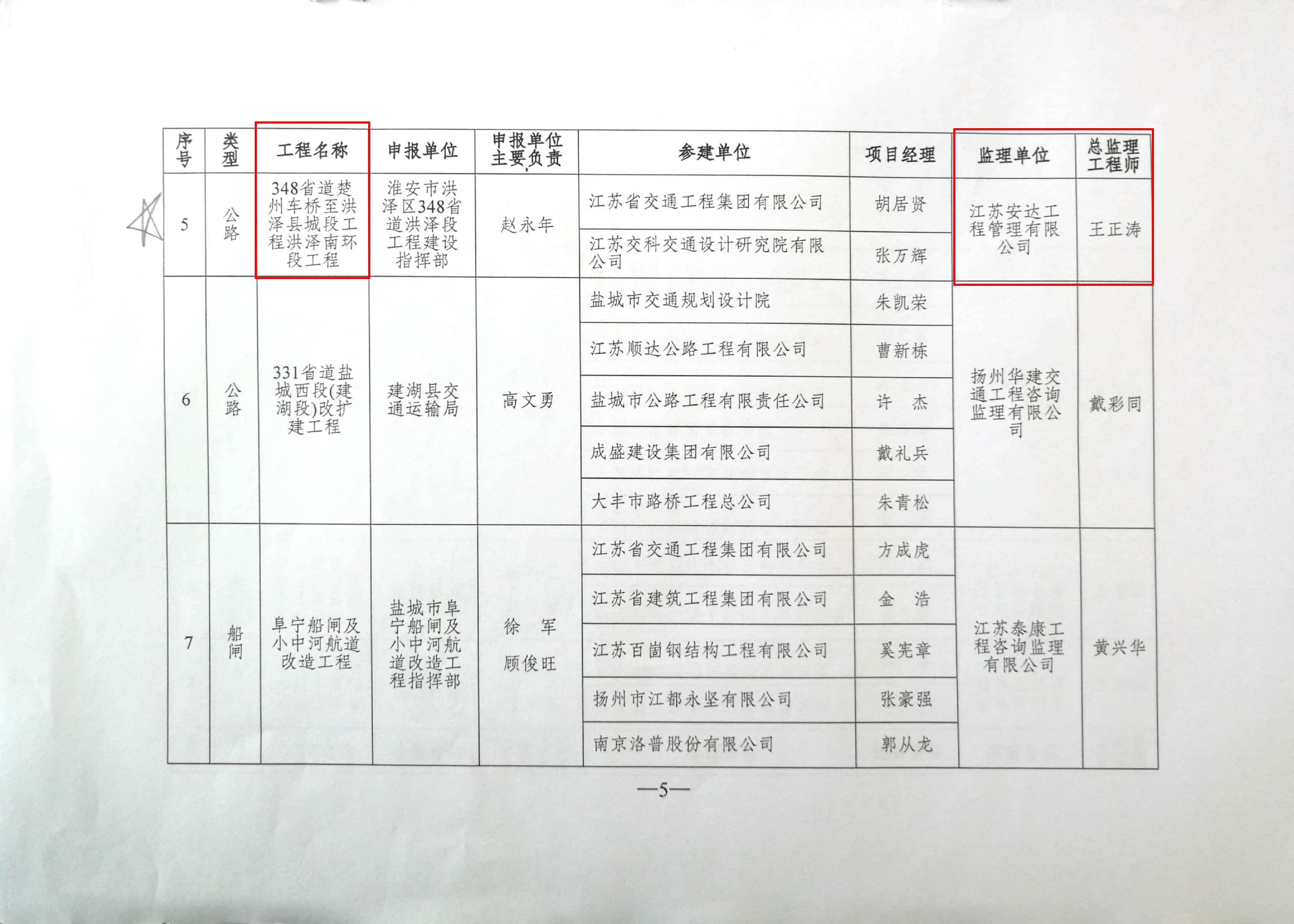 依据《江苏交通优质工程挂牌创建与评审办法》(苏交规〔2018〕3号)规定,省交通运输厅联合省综合交通运输协会组织开展2020年度江苏交通“苏畅杯”优质工程奖评选工作。我司参监的“348省道楚州车桥至洪泽县城段工程洪泽南环段工程”荣获嘉奖。