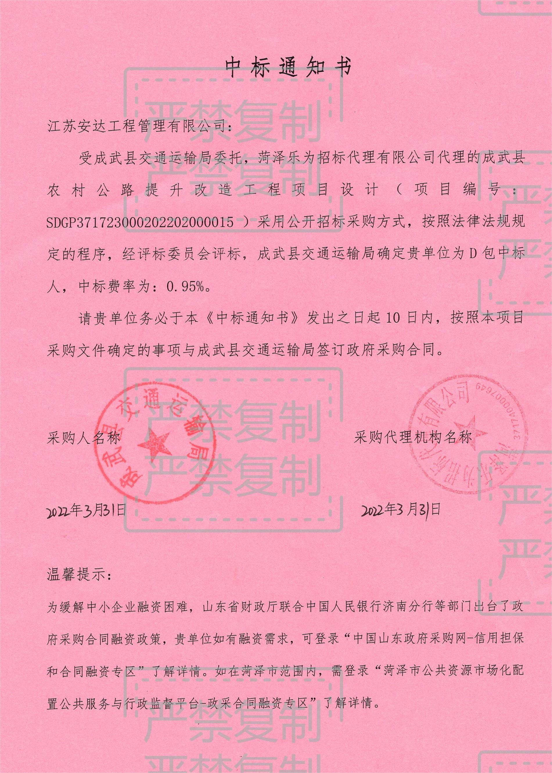 我星空(中国)中标成武县农村公路提升改造工程项目设计