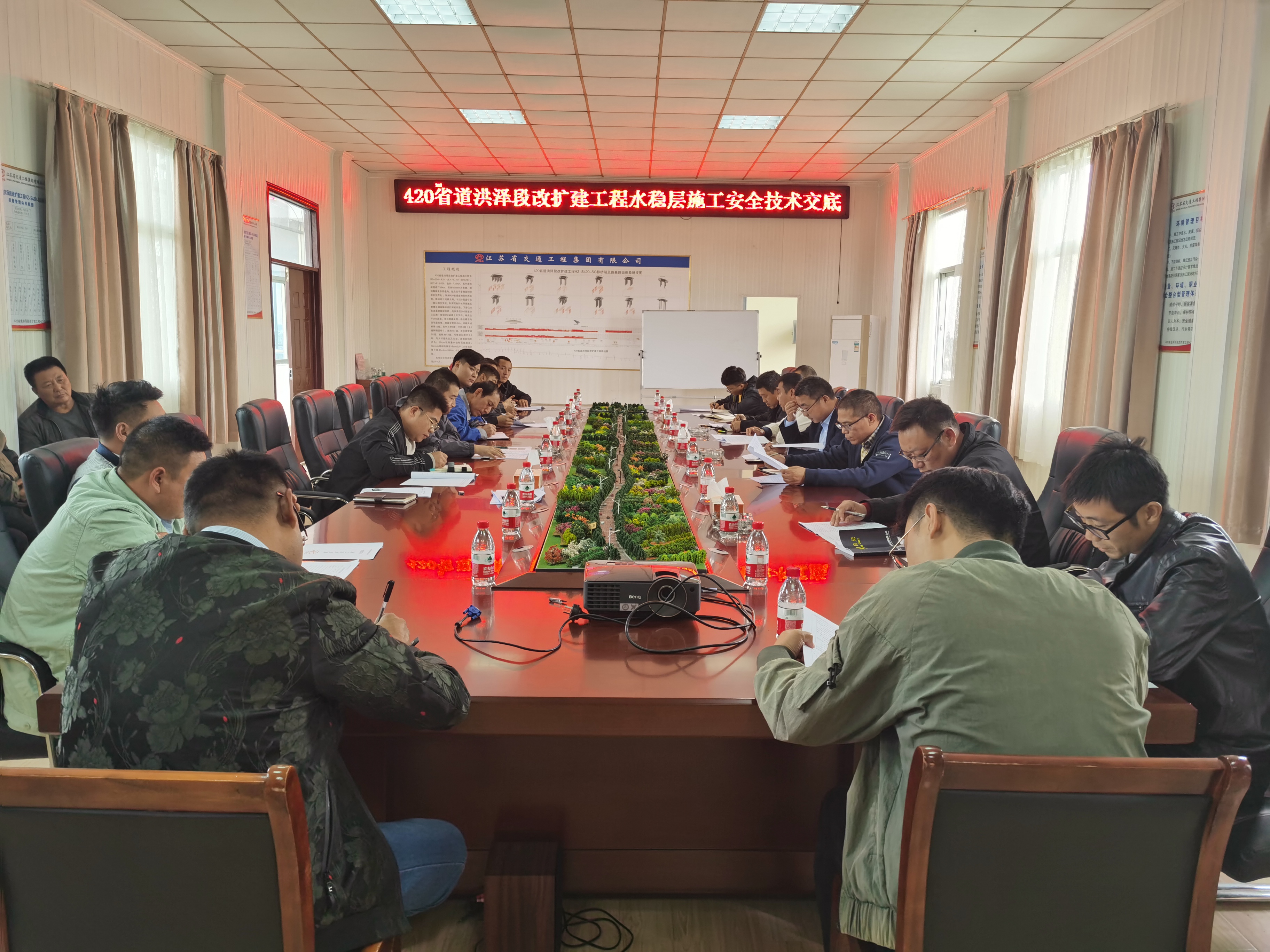 【公路】420省道洪泽段改扩建工程召开水稳层施工安全技术交底会议