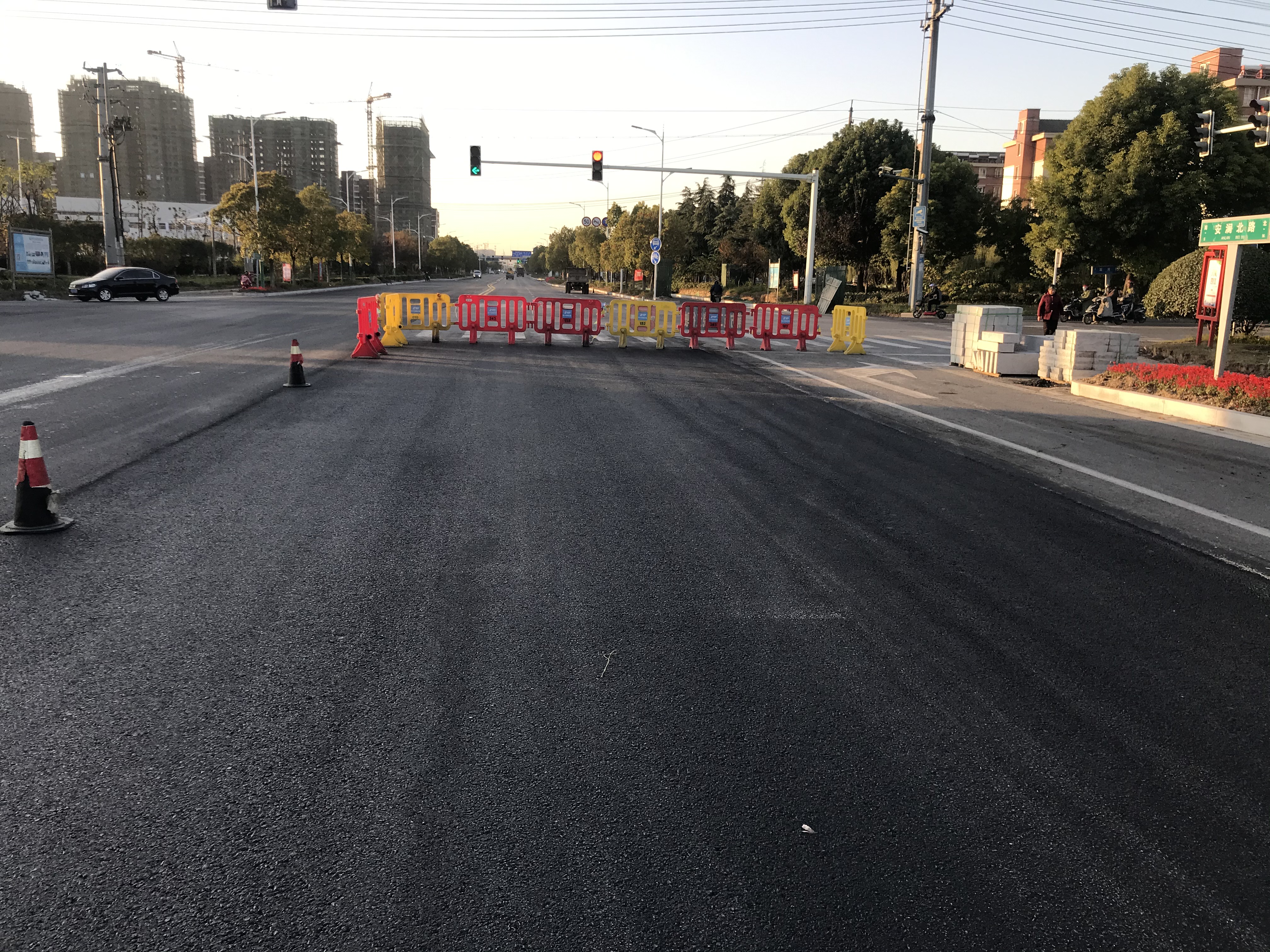 11月3日,安澜路(深圳路—富誉路段)快车道原沥青混凝土路面病害处理后,完成摊铺沥青混凝土路面施工。